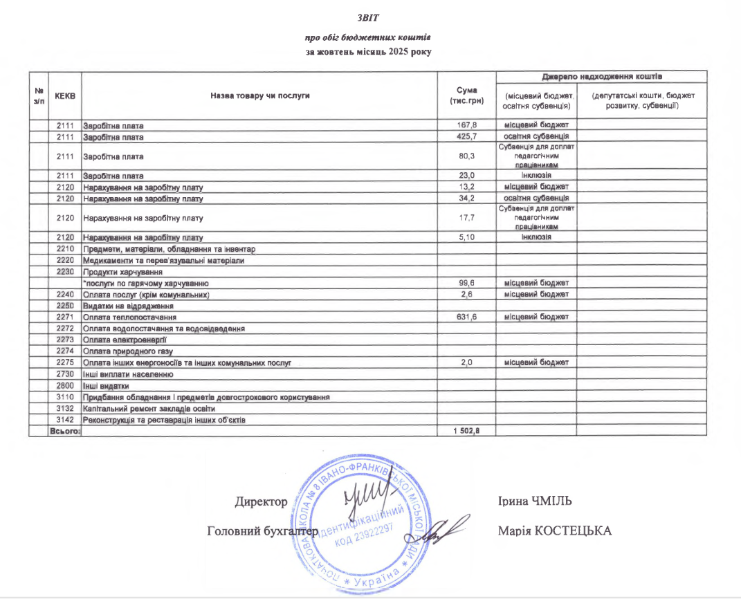 Фінансовий звіт про надходження та використання всіх отриманих коштів